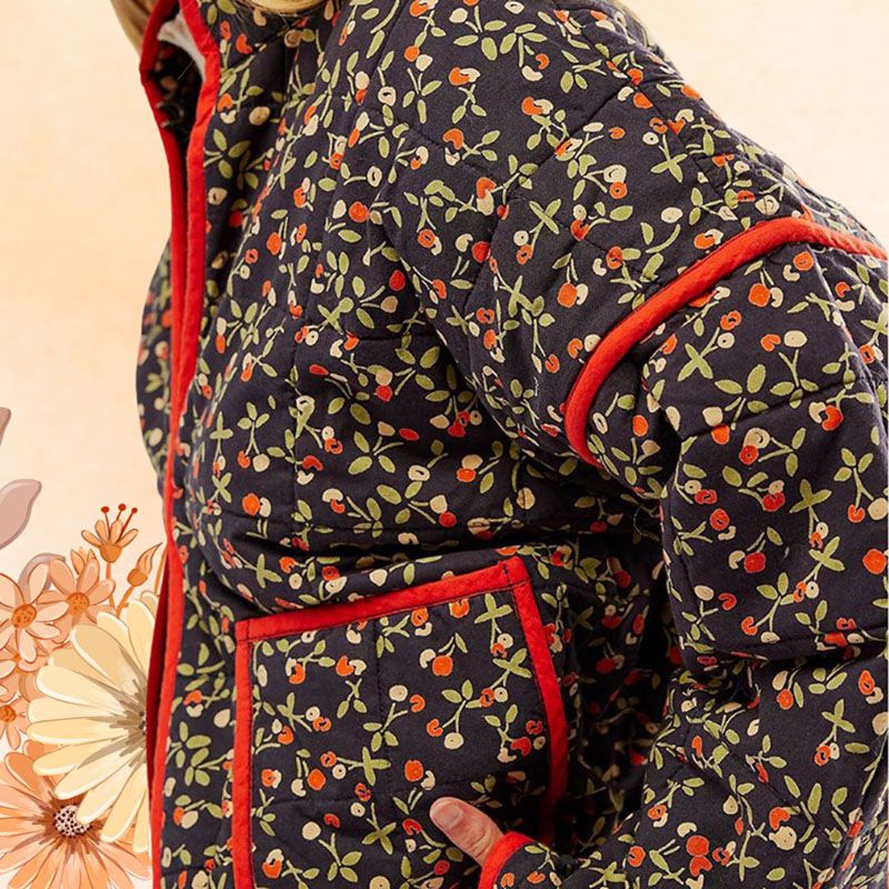 Featuring a unique floral print and dolman-style silhouette, this jacket adds the perfect touch to any look. With dropped shoulders and a high-collar design, it’s both stylish and comfortable. Made with quilt-inspired fabrication, it’s a must-have for any fashion-forward individual. One of the trendy Quilted Jacket With Pretty Floral Print for daily outfits all the year around.