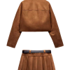 Sapphire’ Faux Suede Short Jacket & Pleated Skirt Set (Sold Separately)