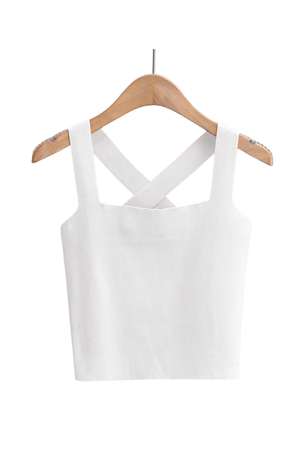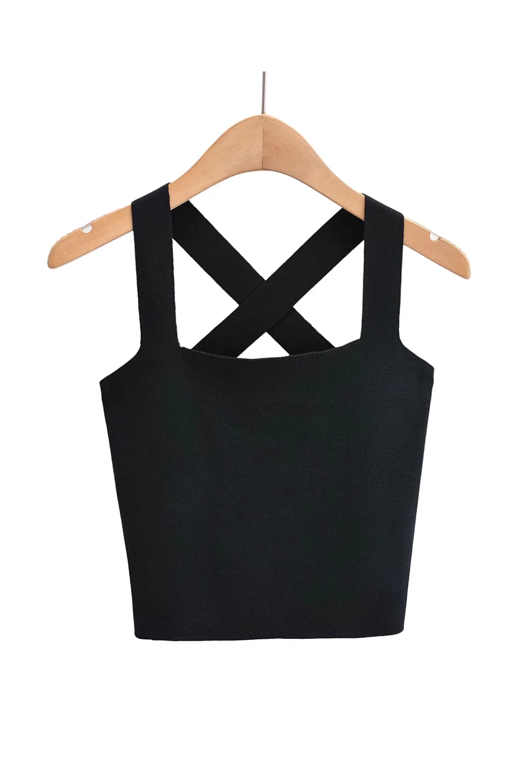 Goodnight Fabricheadbandbow ‘Sapphire’ Sleeveless Cross Back Knitted Top (3 Colors)